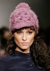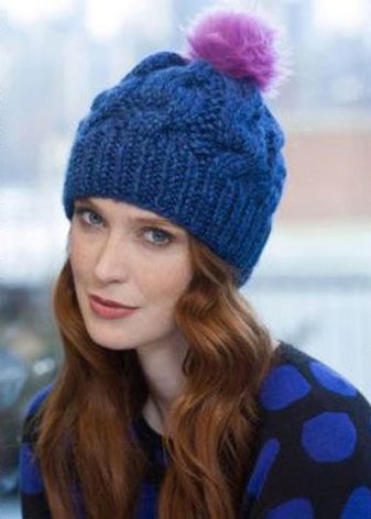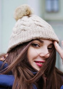 A knitted hat with a pompon looks cute, especially if it is made of natural fur. The “braids” pattern can also be decorated with extravagant knitted helmets, which extraordinary young ladies wear, as well as original hats with ears. This relief pattern is also appropriate for a hat with a visor, while the visor itself is made with an elastic band, stocking or garter stitch.