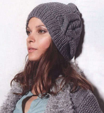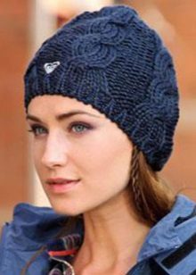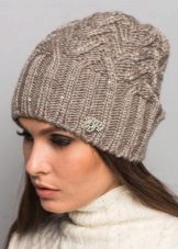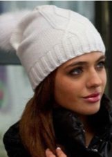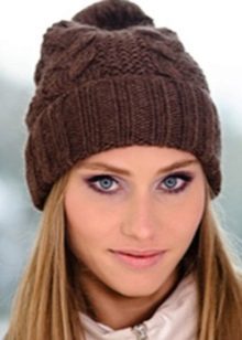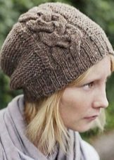 The cap may be completely tied with braids, but sometimes this pattern adorns only part of the headdress. An example of this - knitted hats with a lapel. Often the lapel is knitted separately with a large oblique in the middle, while the product itself is made simply viscous.