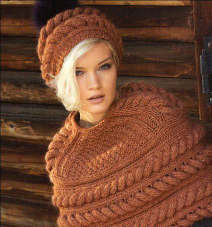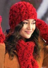 - The original and bold look is obtained if you wear a hat with an Aran pattern with a long dress and a short jacket or poncho. It should be borne in mind that knitted hats with ears look cute on long-haired girls.