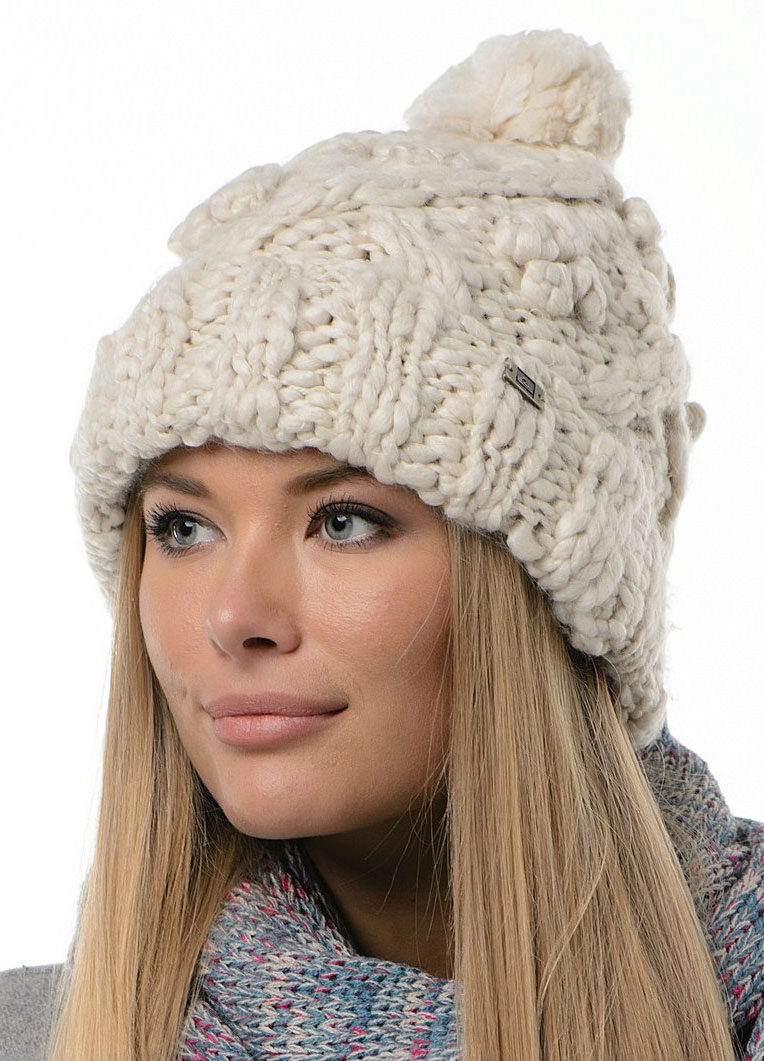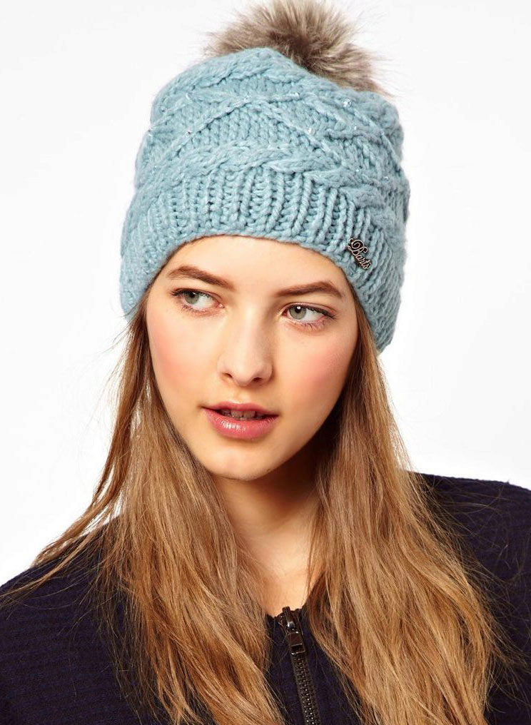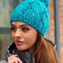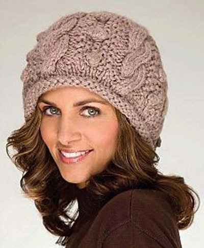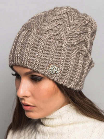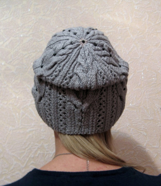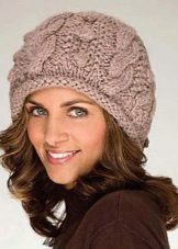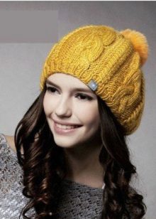 Hats with Aran patterns decorated with fur fragments are popular with many women of fashion (fur can be natural or artificial). In some models, inserts from other textures are used, for example, for tying the edge.