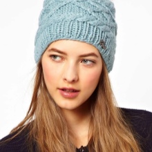 - The British brand Burberry offers hats with braids of calm tones, invariably decorated with bright arctic foxes (yellow-green, blue-blue, red-violet). Products are made from a combination of natural wool with high-quality cashmere. The hats are decorated with an embossed company logo on a metal plate.