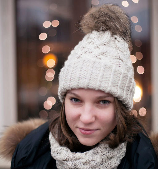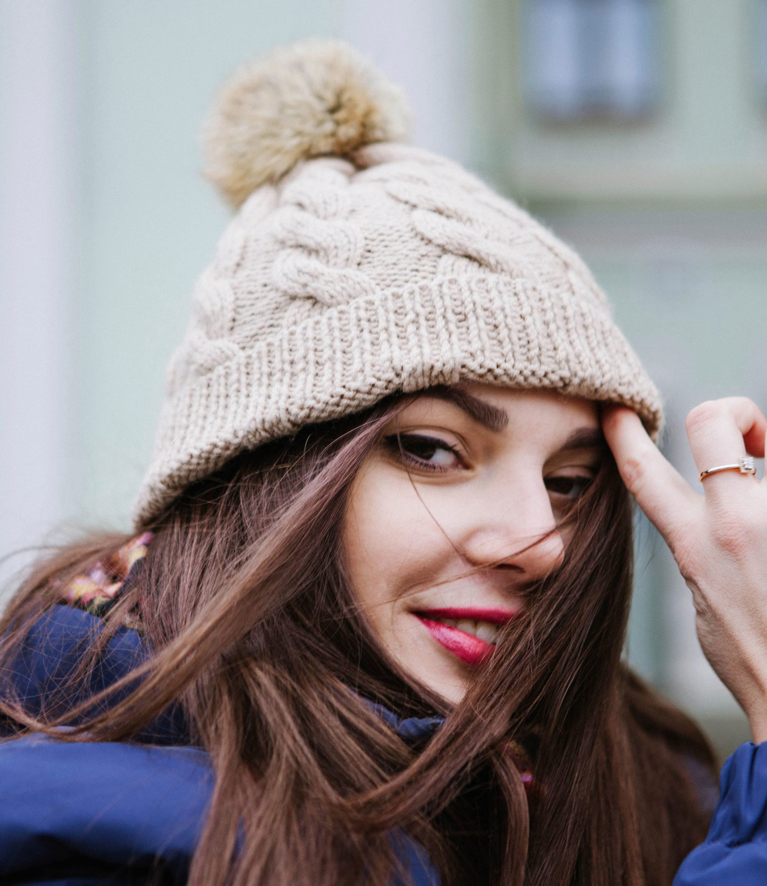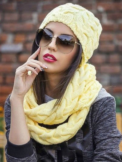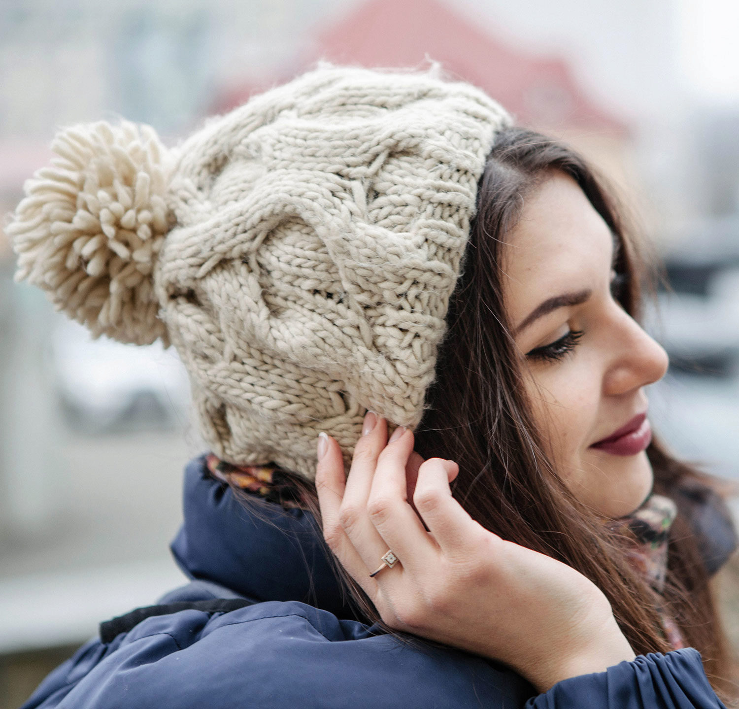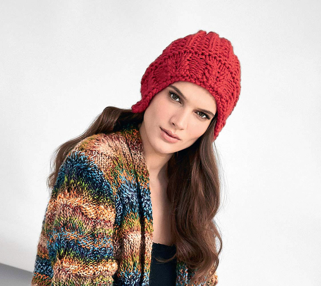 Choosing the color of a knitted hat, you should focus on your complexion and hair color. Red or pink will visually add a blush and refresh the skin. White color will set off dark skin and emphasize pale even more.