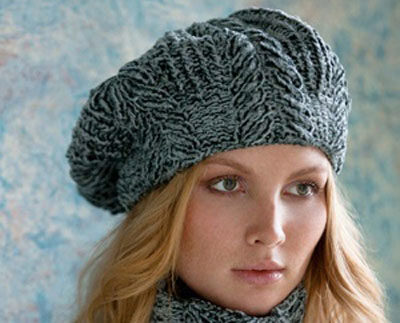 This exquisite pattern is also suitable for knitting berets, at which the canvas initially expands and then narrows). A beret can also be cut from several separately connected wedges, then the embossed braids will rush towards the center.