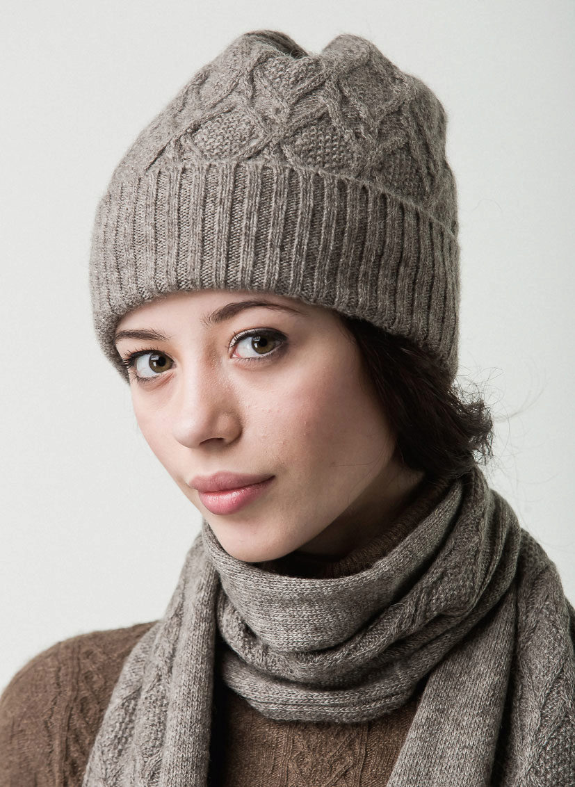 - The collection of the German brand Seeberger, which has been producing headwear for more than a hundred years, features charming warm hats with a pattern of rhombuses, as well as berets made from garter stitch with large braids. Products made from a combination of wool and acrylic.