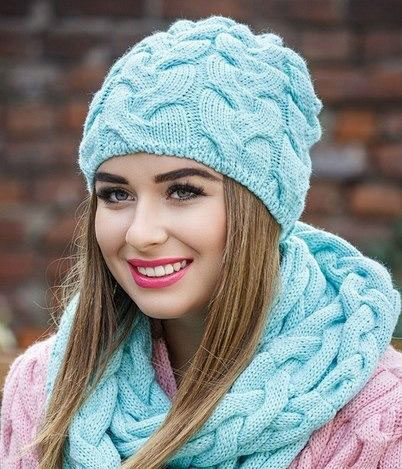 Pattern "Spit" has many varieties. Braids are large and small, voluminous and relatively flat, solid and contrasting. If you choose a hat with such a pattern, then focus on your facial features: the larger they are, the larger the drawing should be.