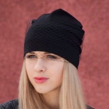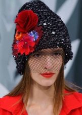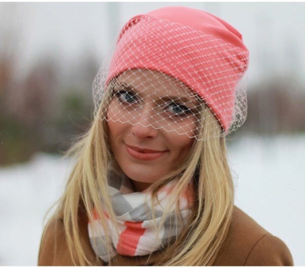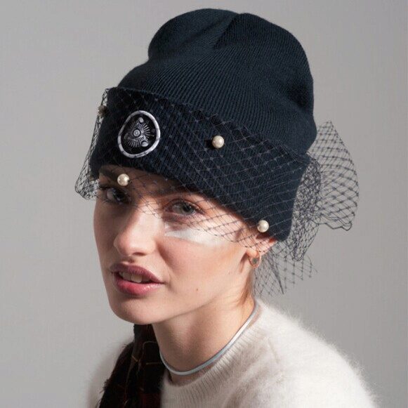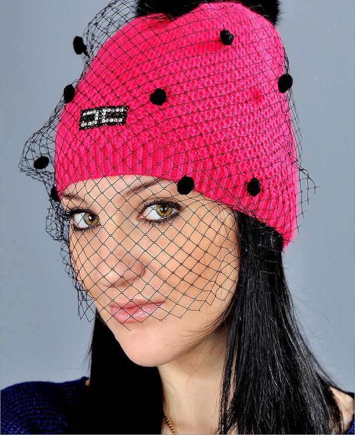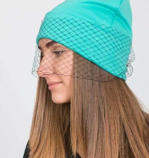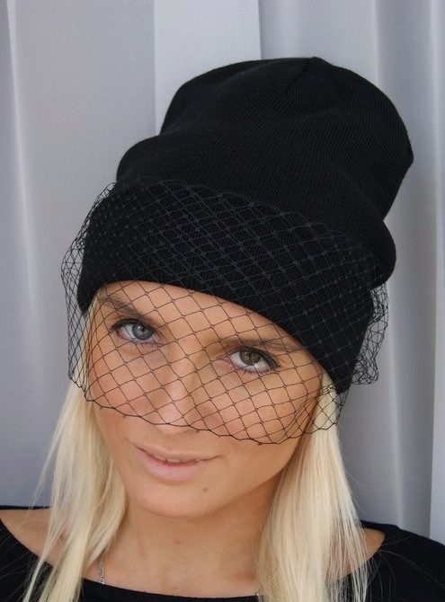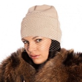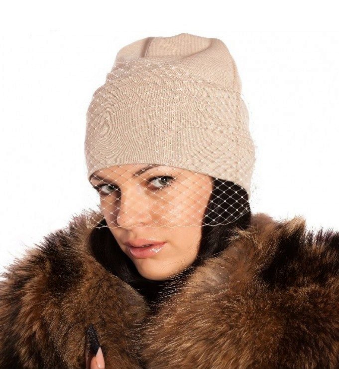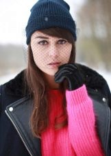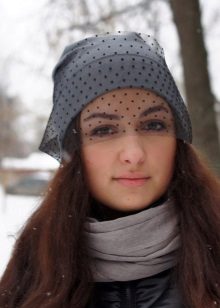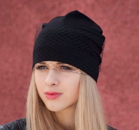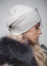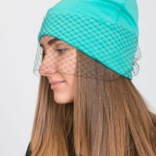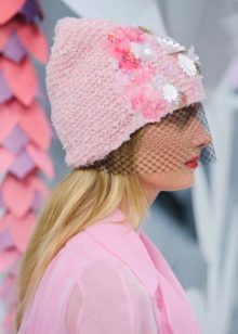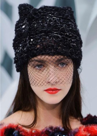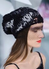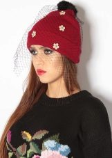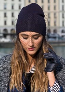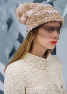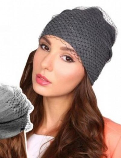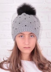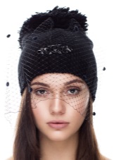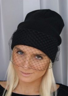 - The material from which perform the caps with a veil may be different. The stores are knitted, cashmere models, styles of large bulk knitting. Variety will help you choose the right option for all weather conditions.