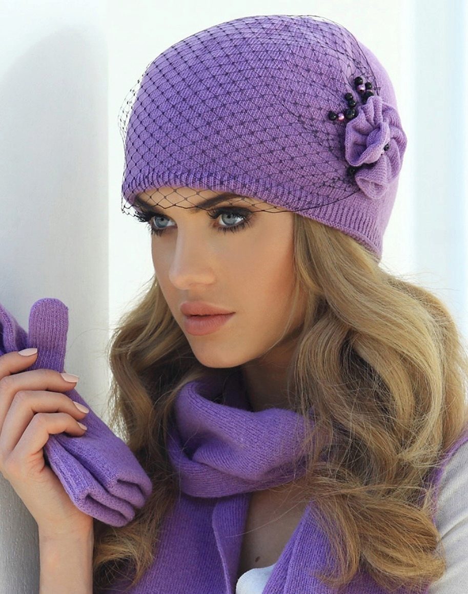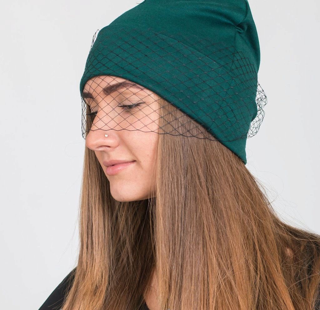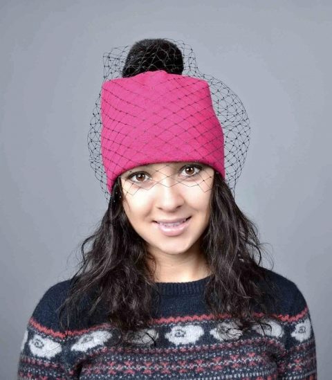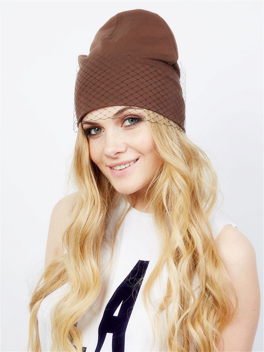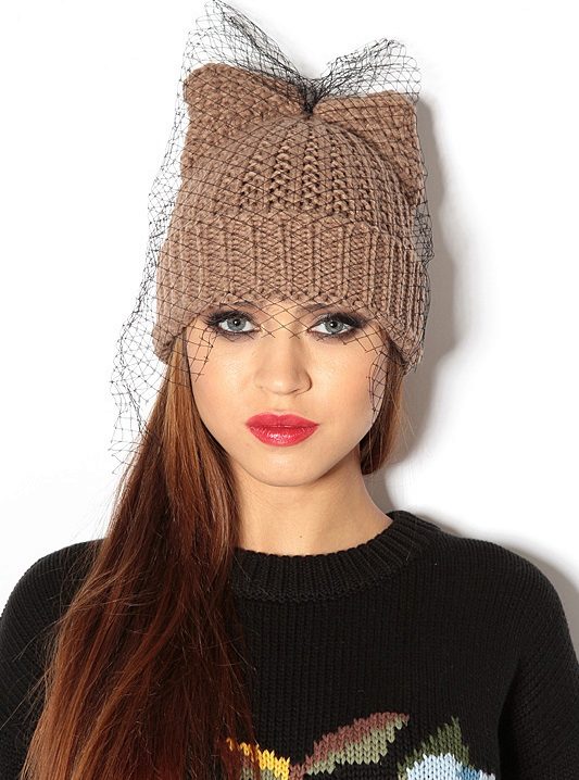- The material from which perform the caps with a veil may be different. The stores are knitted, cashmere models, styles of large bulk knitting. Variety will help you choose the right option for all weather conditions.