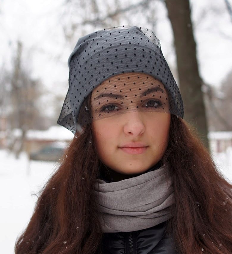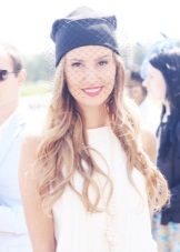 - Rule number 1. Bolder, bolder! Cap with a veil is designed for people who love experiments. Wearing such a hat, you need to be ready for increased attention, sometimes surprised looks, and sometimes even to judging.