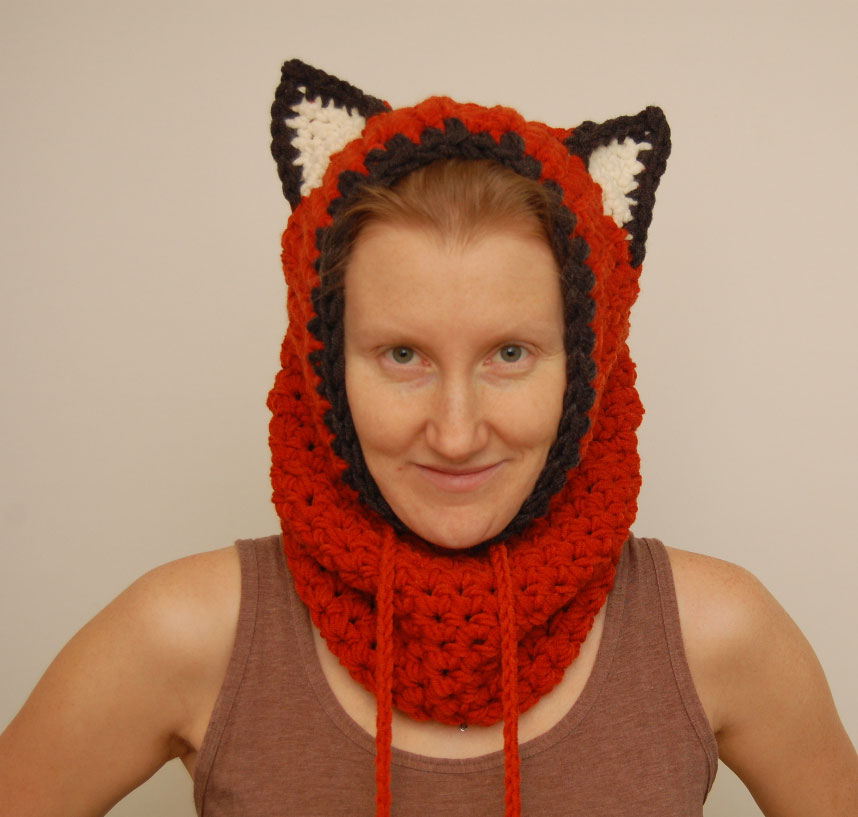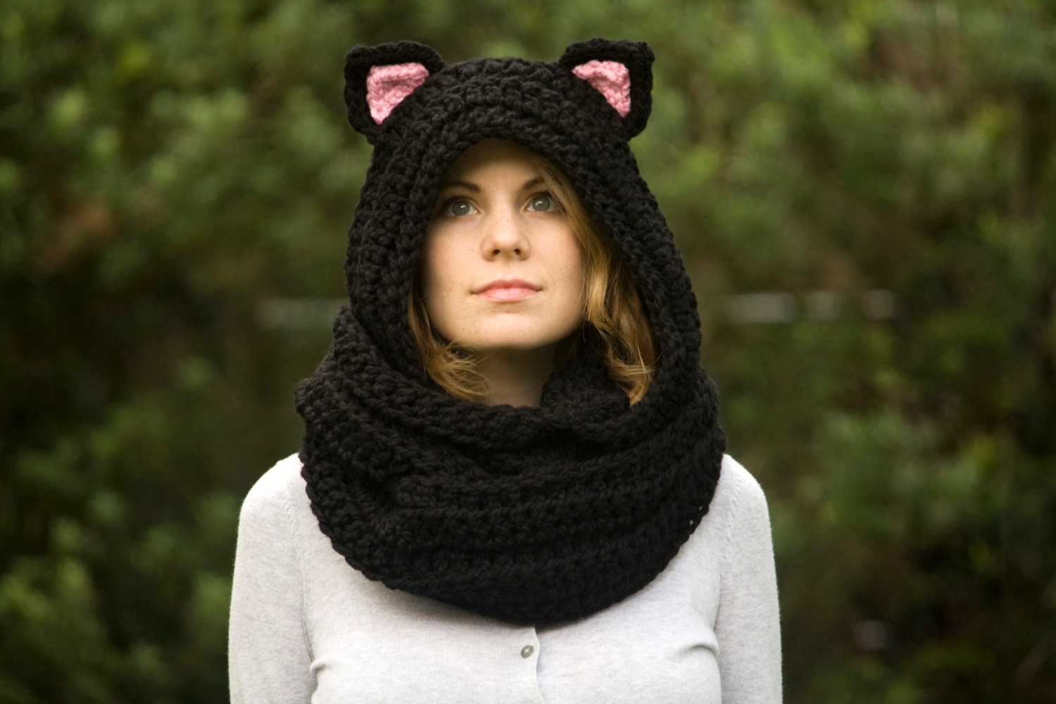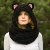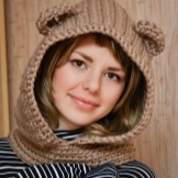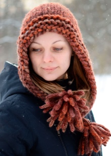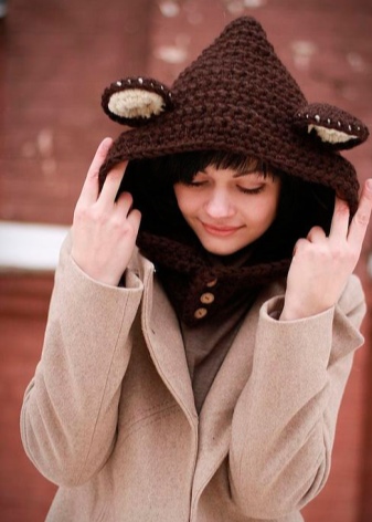 Fans of the original and practical things hat caps definitely have to taste. Immediately there is no such question as compatibility in color and texture of the cap and scarf, and it is much easier to choose accessories for it. The hood well warms the shoulders, neck, head and ears in cold weather due to its volume.