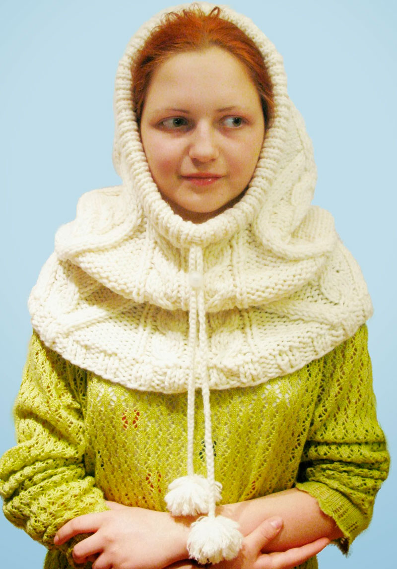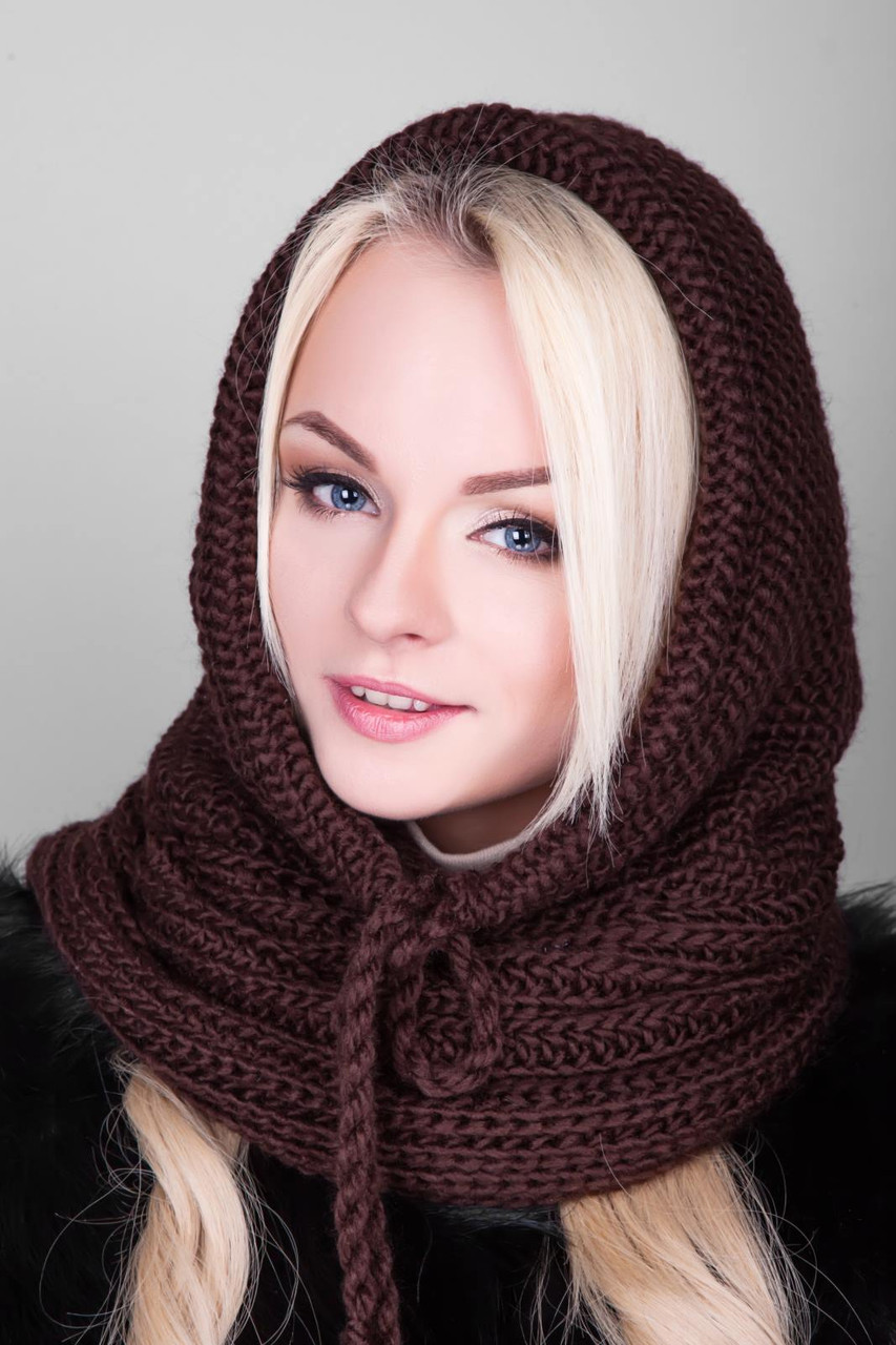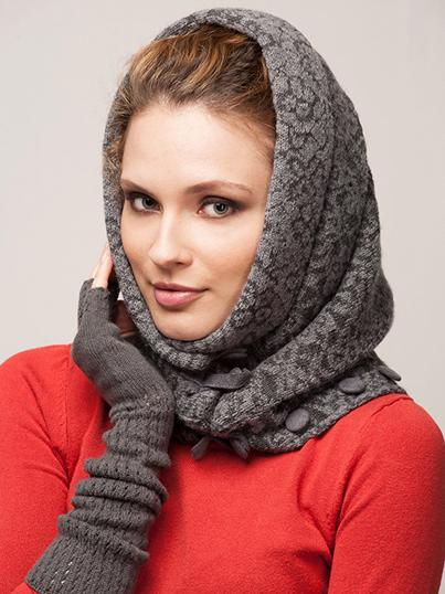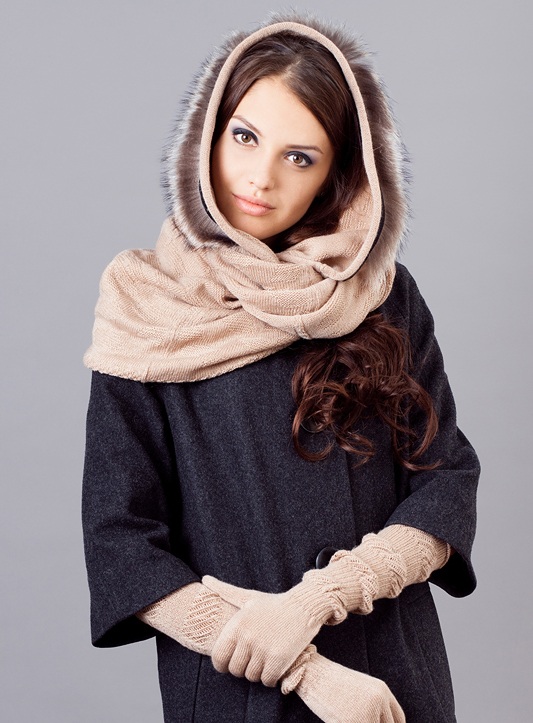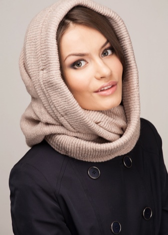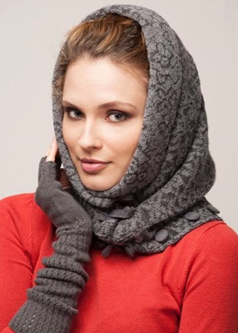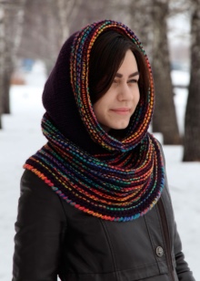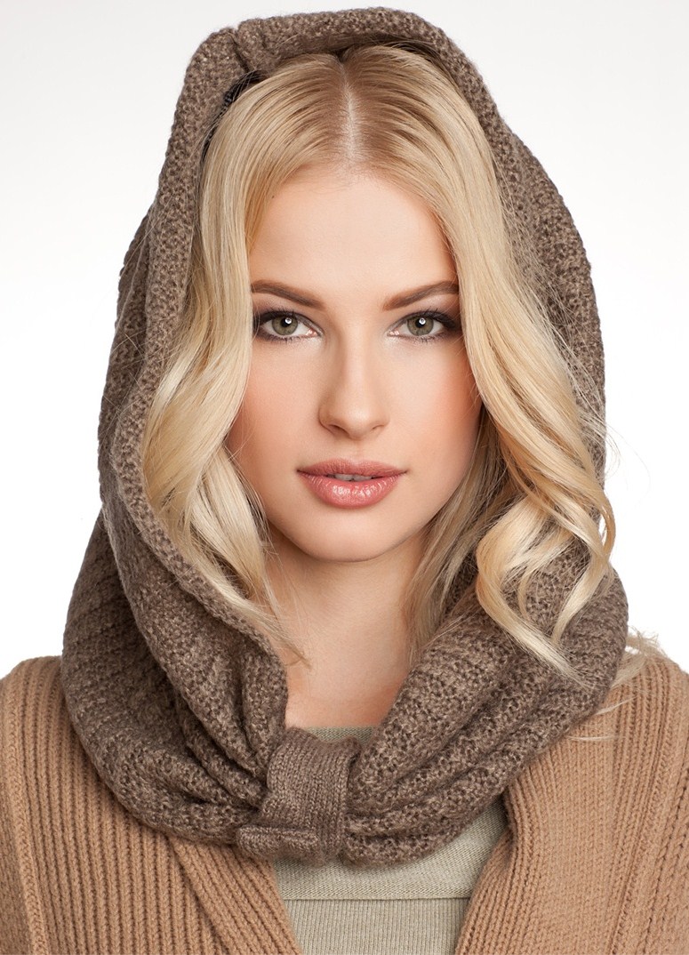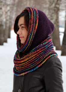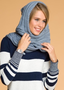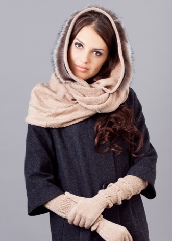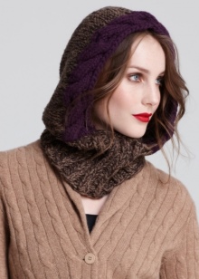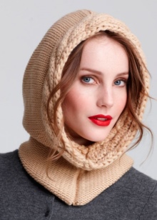 Along with the scarf-snud and the baktus-scarf, the scarf-hat is increasingly winning a place in the sun. Today completely different models of this accessory are in fashion. Fur, natural and artificial, fleece and knitwear, cotton and wool - these are the most popular materials for the manufacture of the hood.