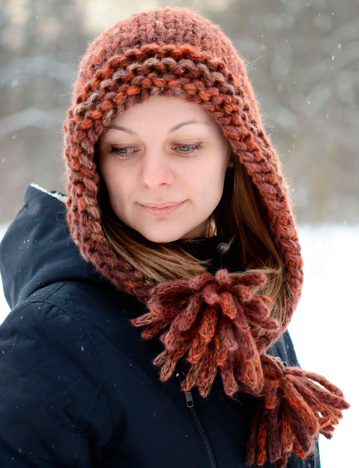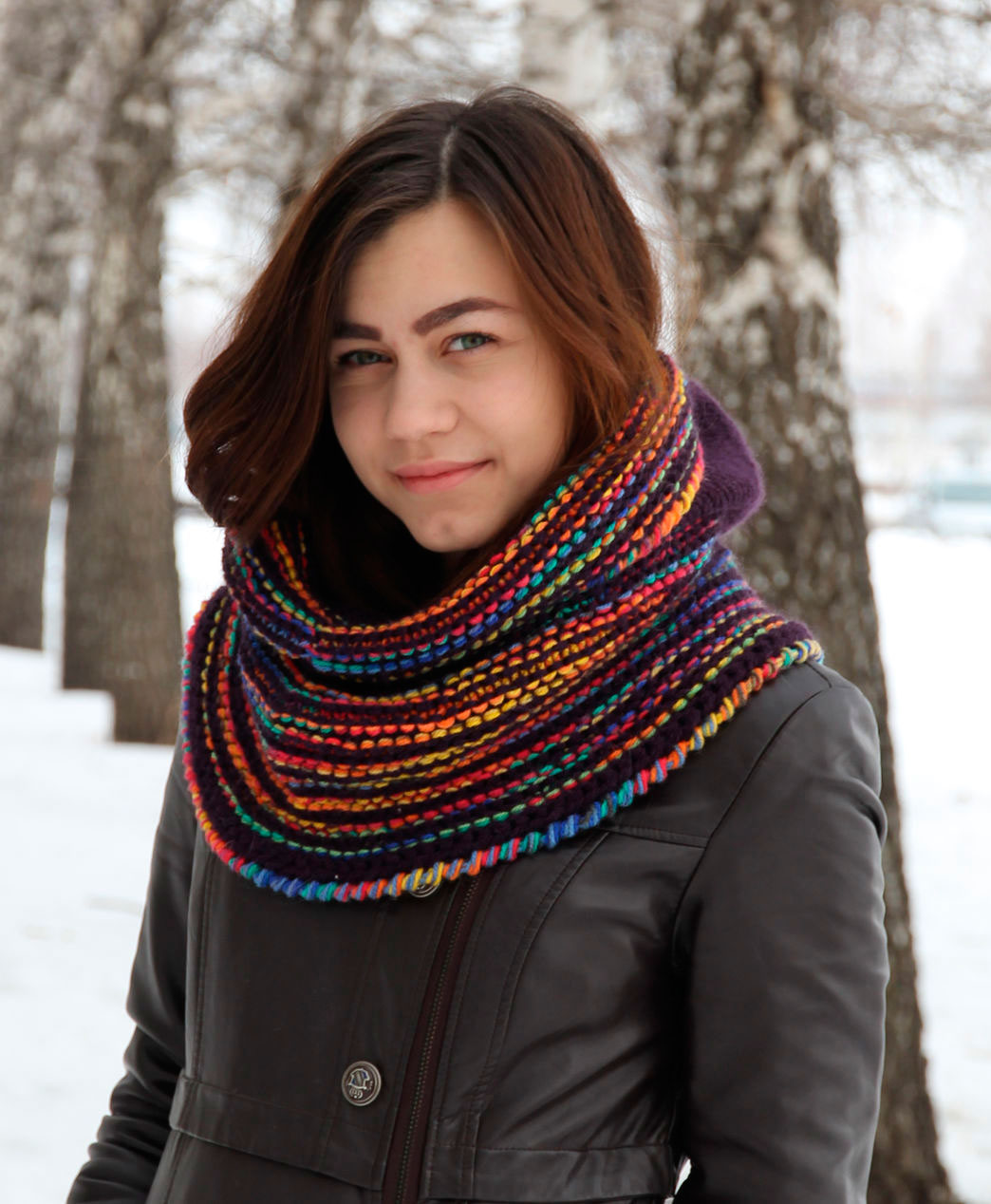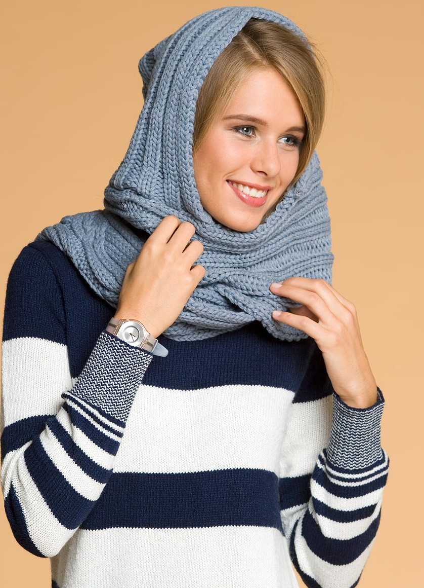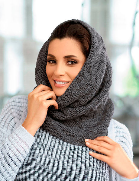 Along with the scarf-snud and the baktus-scarf, the scarf-hat is increasingly winning a place in the sun. Today completely different models of this accessory are in fashion. Fur, natural and artificial, fleece and knitwear, cotton and wool - these are the most popular materials for the manufacture of the hood.