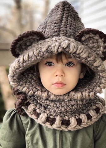 As mentioned above, recently the caps in the form of various animals are very popular. The bonnet is one of the most convenient pieces of outerwear just for the realization of this idea. Fur caps look good not only on children, but also on girls.