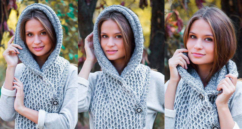 This accessory is universal not only because it fits under outerwear of any style, but also that will be a wonderful decoration for women of all age groups. The main thing is to choose a combination of color and texture of the hood and outerwear.