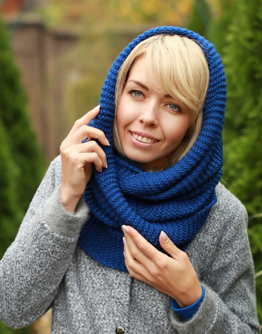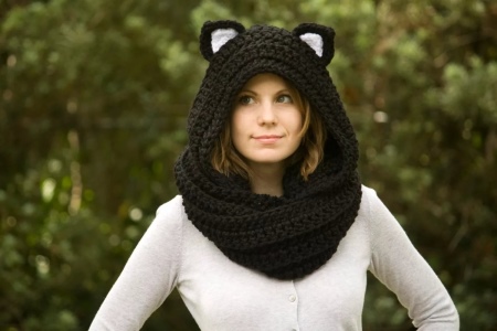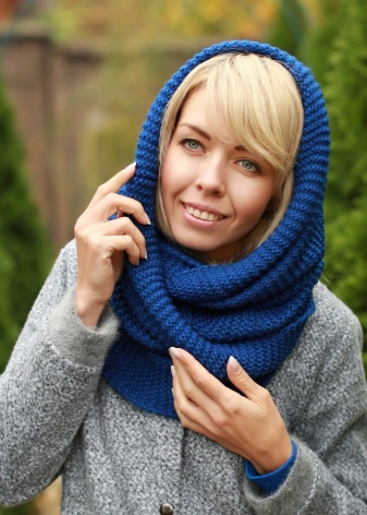 This is the most popular type of transformer cap. Stylish and original snud suitable for the autumn-winter period. Interesting design makes this thing attractive even without the use of any decor. Snud is easily converted into a cap. Outwardly, he looks like a hood, but is more free. Cap-Lens is one of the first models of knitted transformers.