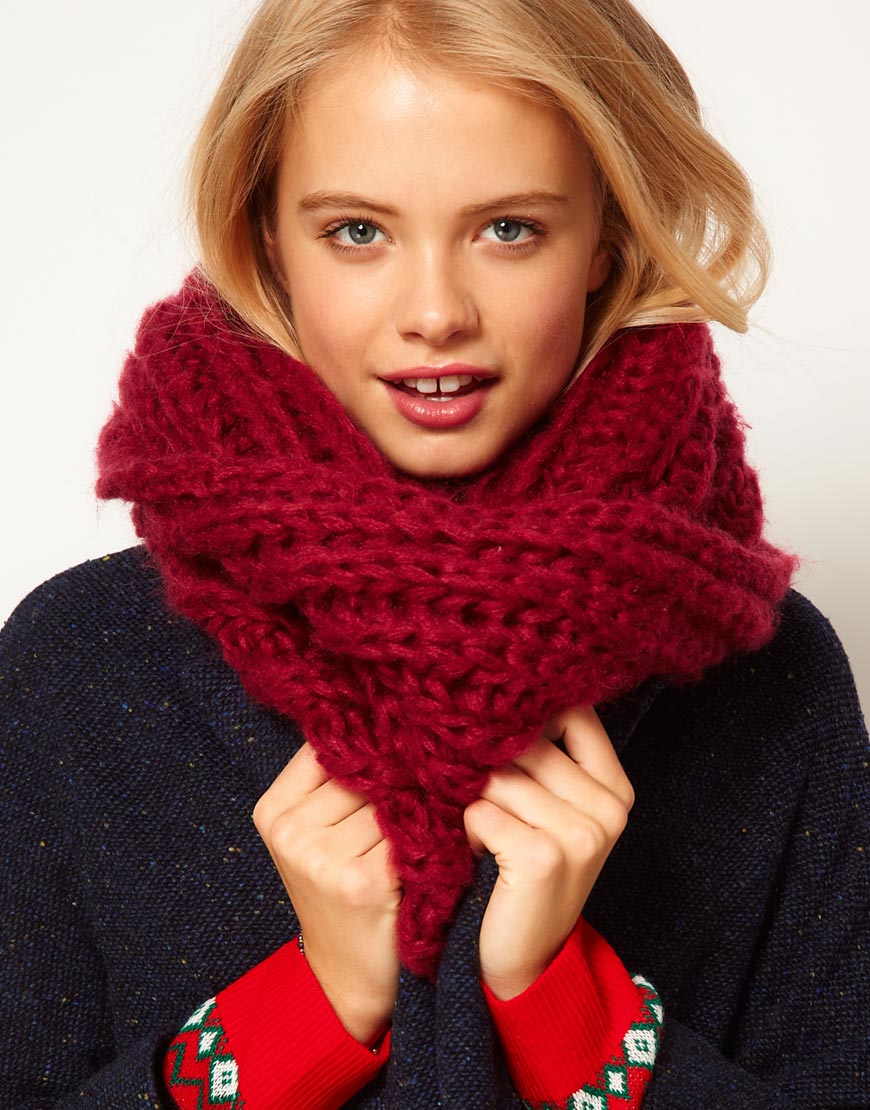 You can wear such an accessory as a scarf, and if there is a need, throw it over your head like a hood. It is very convenient and practical, and is particularly suitable for those girls who do not like to wear a hat. Snood will not spoil your hairstyle, but it will protect your head from cold and snow.