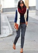 The scarf is a great solution for creating a fashionable bow for every day. Sometimes it can become an irresistible element in the incarnation of a business bow. It can be decorated with brooches, bows or beads, but the main thing is not to overdo it.