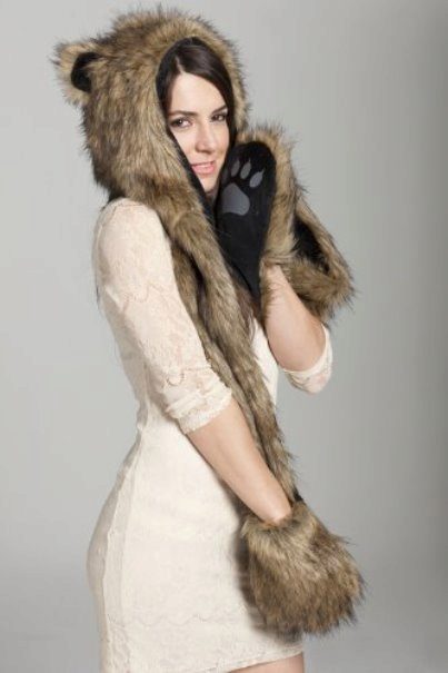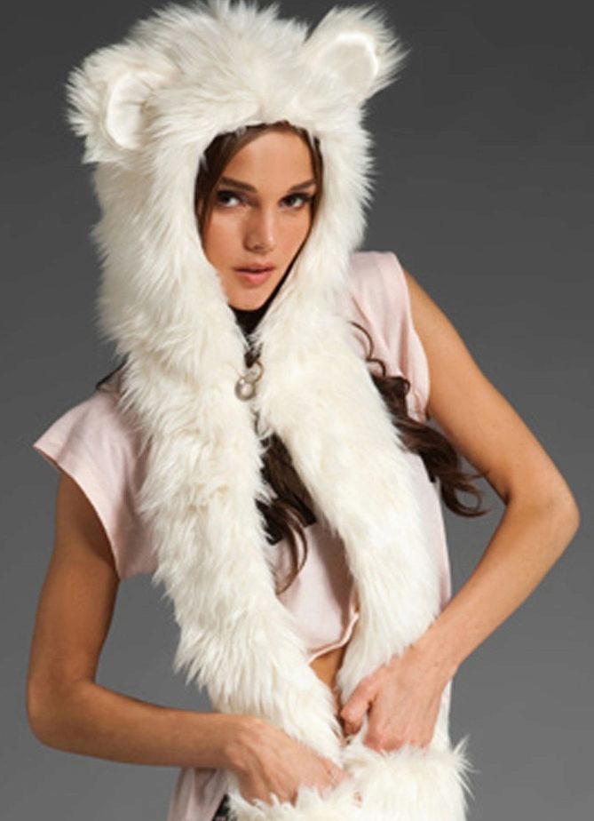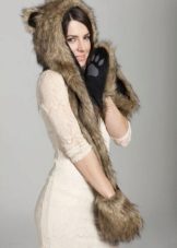The fur cap-scarf with ears deserves special attention. This headdress will definitely be the highlight of your compelling bow and will not leave anyone indifferent. Designers even took care of the comfort of their hands and took a special place for them.