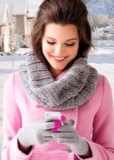 This hat looks harmoniously in tandem with mittens or with gloves without fingers. When choosing shoes should be preferred uggs. If you decide to wear this item of clothing as a scarf, then it can be combined with a hat.