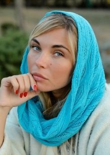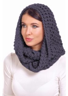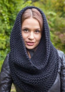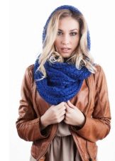 Knitted hat scarf is a good option for the cold season. It can be knitted of wool, boucle, cashmere or mohair. The choice is individual.Knitted Loose can be worn not only as a hat, he can act as a bolero or vest. This element of the wardrobe will be a nice addition for each girl in the cold season.
