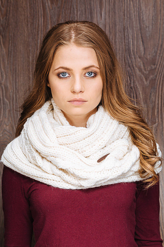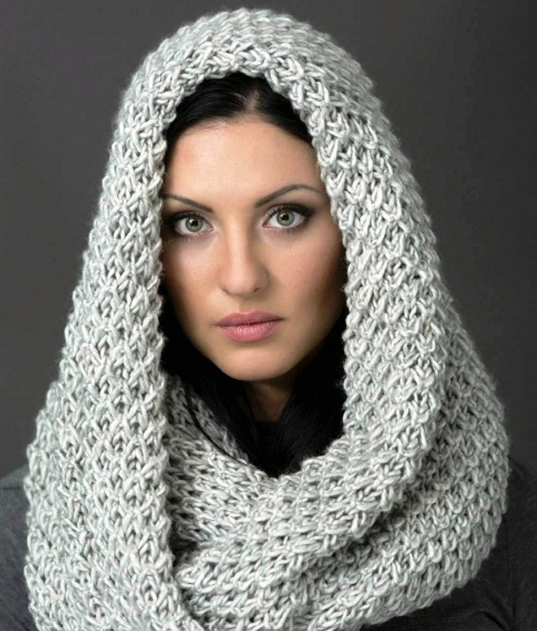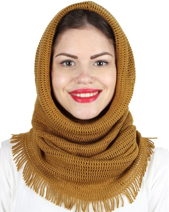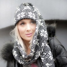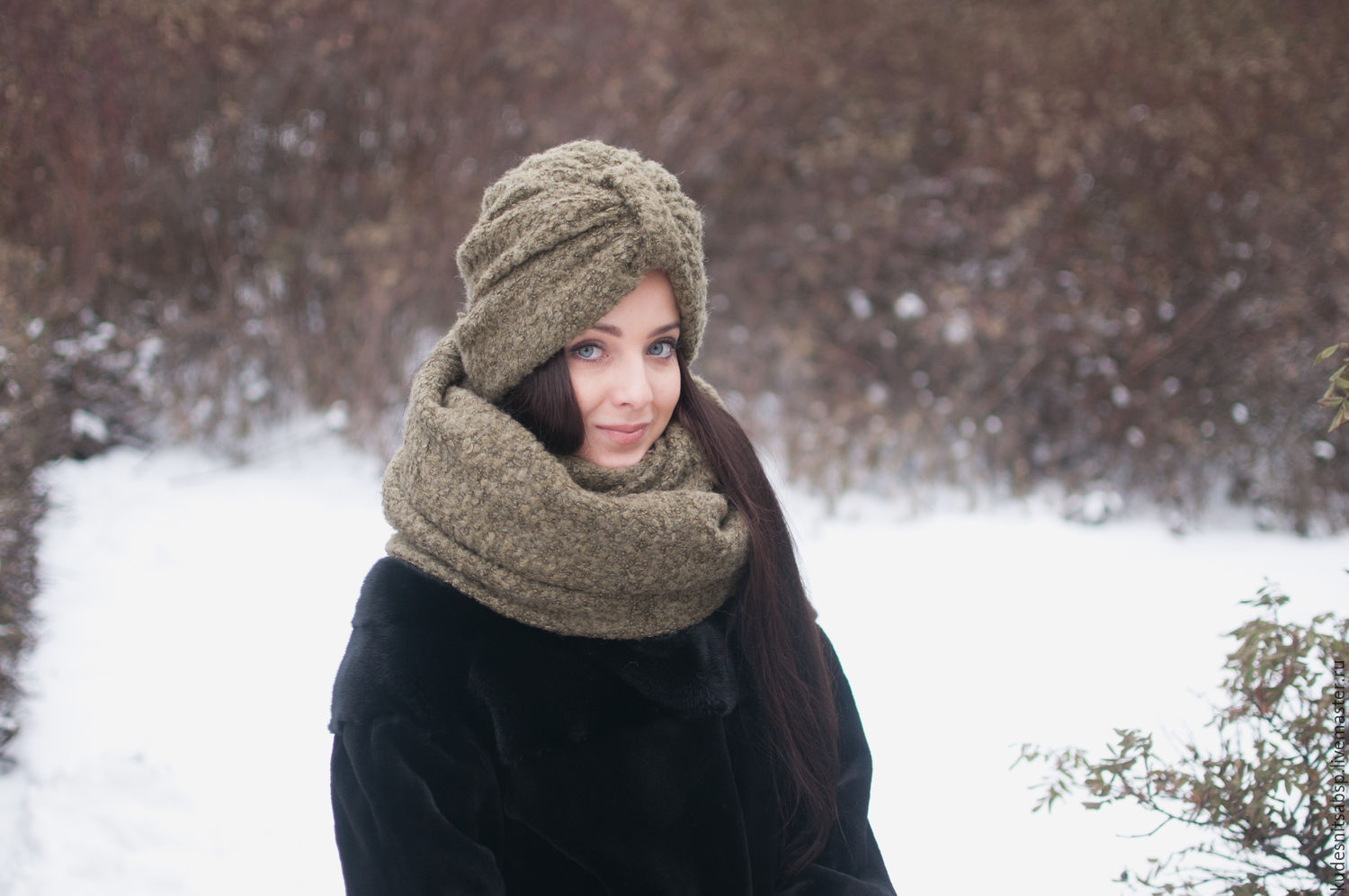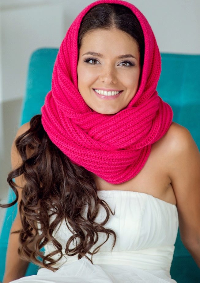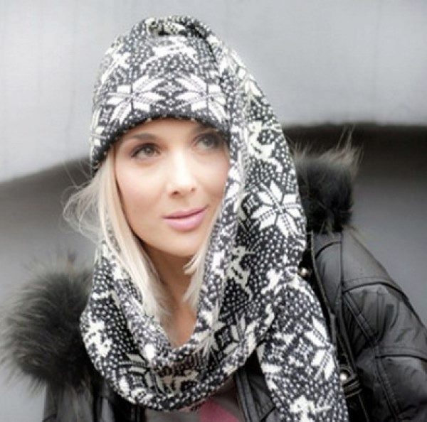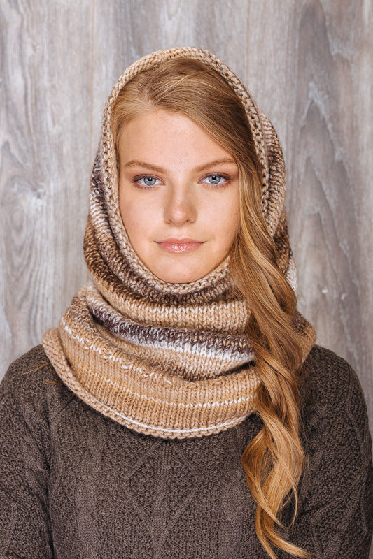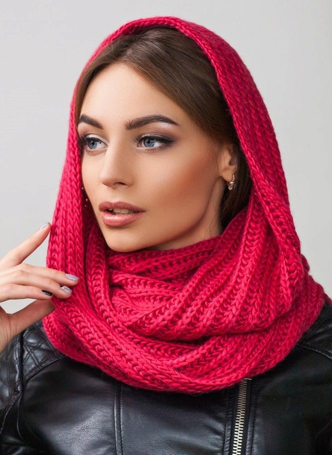 Cap-scarf is ideal for girls who lead an active lifestyle. This headpiece will give warmth and comfort during any bad weather. It will add an image of elegance and brightness.