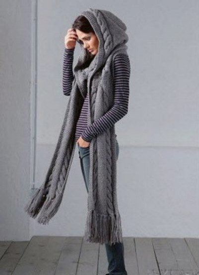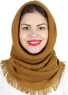 The hood scarf is a stylish piece of clothing that young girls prefer. He has a hood that protects against any weather, smoothly turning into a scarf. Hood at any time can be removed. Such a convenient design attracts the attention of girls practicality and singularity. Often, such models are decorated with original patterns, braids and tassels.