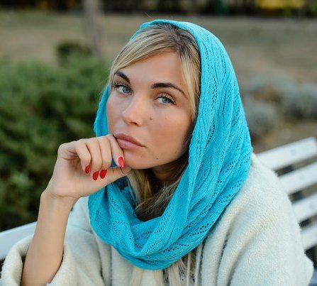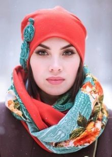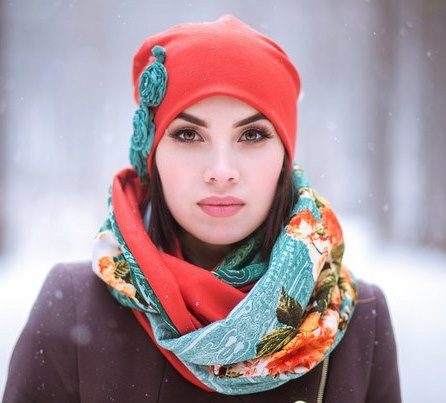 Manufacturers offer a huge range of colors scarf caps to embody the most extraordinary and bold images. But when choosing a color it is necessary, first of all, to build on the color type. It should decorate your face without changing its color.