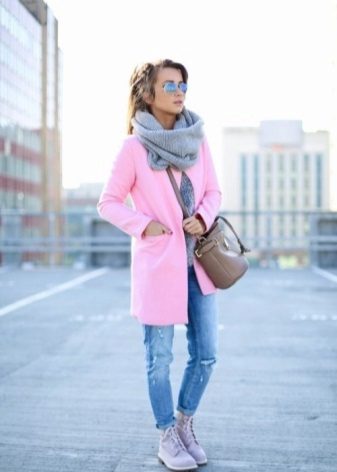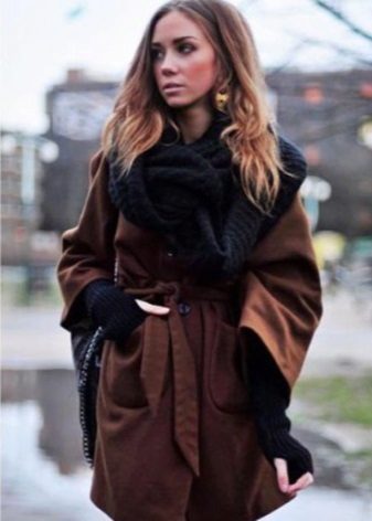 A cashmere scarf is perfect for a classic or drape coat. It can be beautifully laid - create a few turns around the neck and leave two long loops that will hang freely. When choosing a color range of a scarf, it is necessary to take into account that it should be two shades lighter or darker than a coat shade. If the coat does not have a fur rim, then you can add an unforgettable bow with the help of a fur coat.