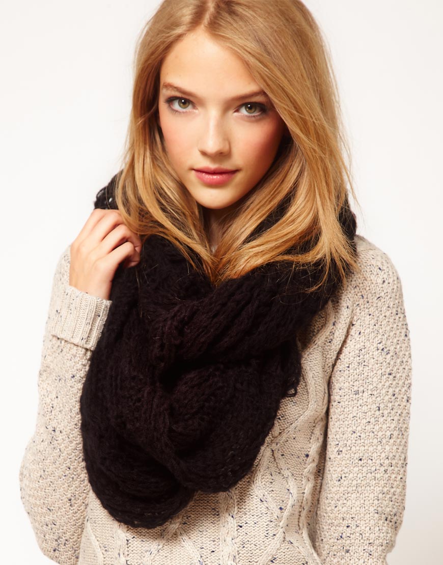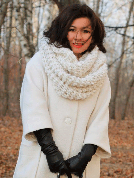 The collar or snud is a practical, versatile and original element of women's wardrobe. This style combines the features of a hood and a scarf. Snud fit in a circle, creating a vicious circle. He has no beginning and no end. It is also called the scarf of infinity or the circular scarf.