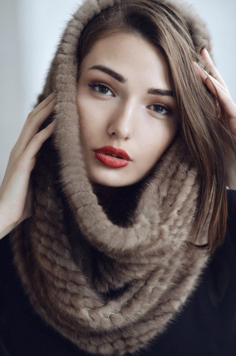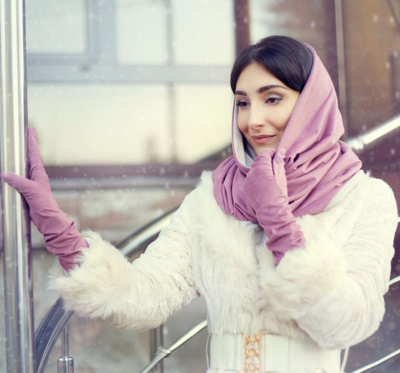A feminine and expensive headdress is a mink scarf. She looks elegant and great fit stylish ladies.