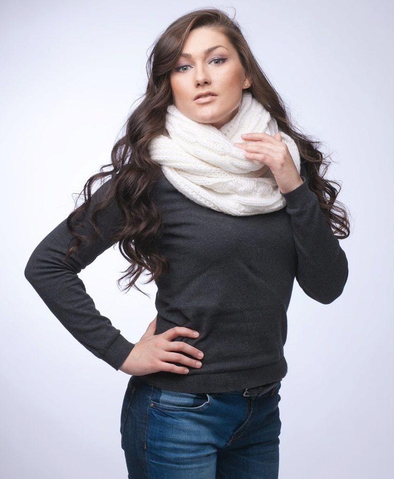 The scarf is a universal accessory, because it can be combined with different outerwear and not only. It perfectly combines with warm tunics, sweaters and even dresses.