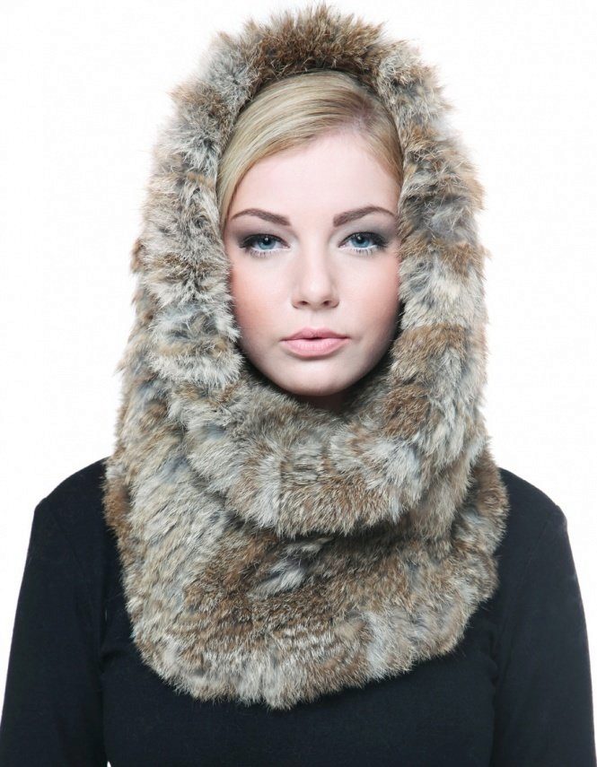 A special place among the scarf caps is occupied by models from fur. They look elegant, elegant and stylish. To embody the evening look, an ideal model is a snow-white color. Fur hat-scarf is very soft to the touch, and also perfectly warms and protects from wind and snow.