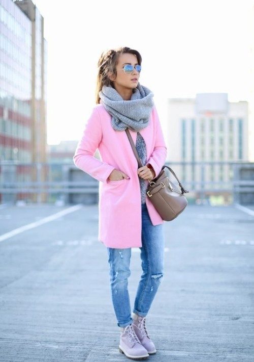 A black dress or pullover in black will harmoniously look in black or red.because such a tandem is always in fashion. For girls who have a lot of pink things, a white or gray scarf will be the ideal choice.