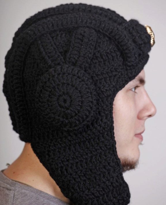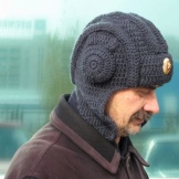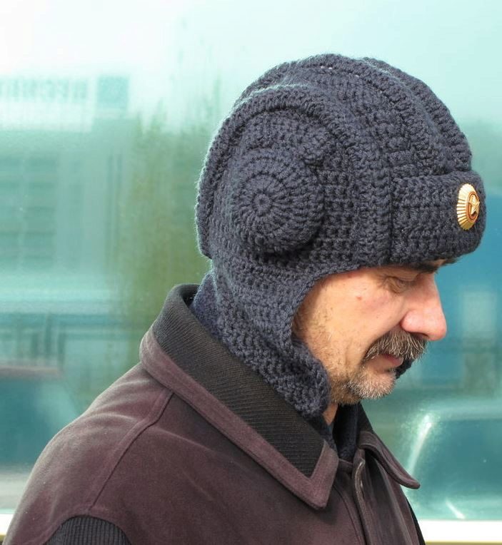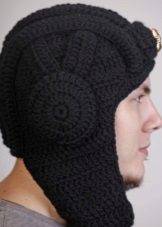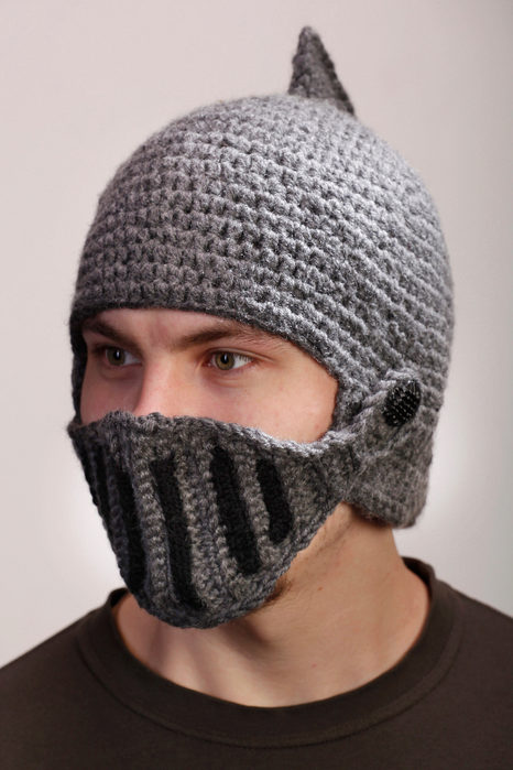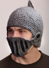 In addition, many representatives of the stronger sex are impressed by funny knitted hats, which literally imitate a medieval helmet. Unless they are made not from metal, but from a yarn.