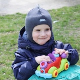 Young mothers say - to wear a hat, it takes a minimum of time, it is very simple and the baby can handle it himself. Besides, the helmet sits neatly on the head, covers the forehead, ears, does not slip and does not twist. A huge plus, according to the parents, is that even with an unsuccessful neck, the neck of the overalls is always covered.