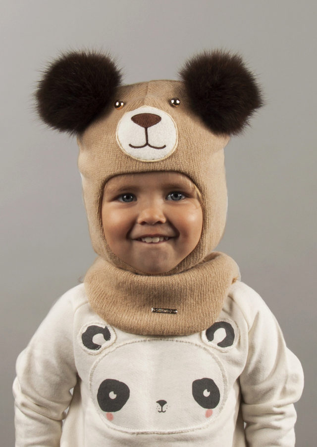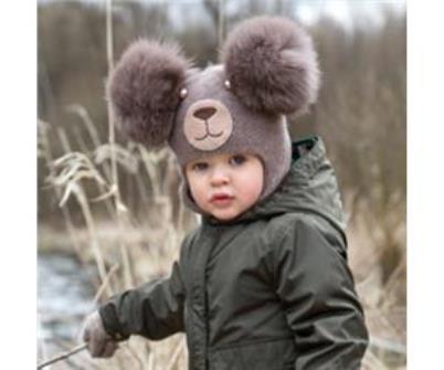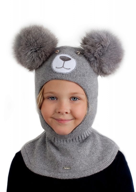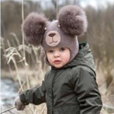 Very cozy and gentle hat, which turns the child into a little bear with fur ears. Practical gray color will suit any outerwear, and pleasant soft wool will not cause discomfort for your baby. A funny little face of a bear cub will win not only the heart of the little owner of such a hat, but all around!