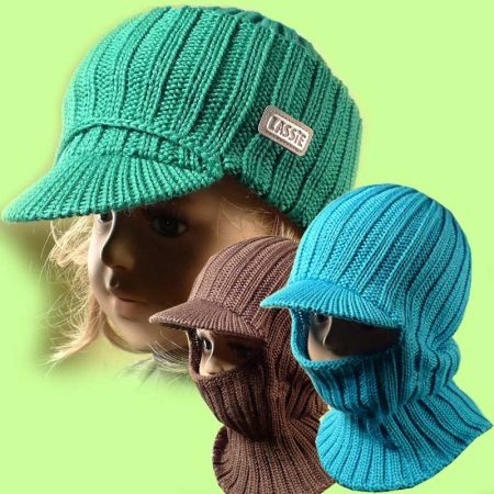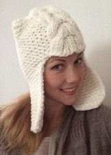 Knitted helmets have a different texture - “braids”, “diamonds”, inserts from another fabric.An additional protection to the hat-cap is given by a visor, which, as a rule, is covered with a cloth or tied with yarn. So the headdress protects the face from wind, snow or the winter blinding sun.