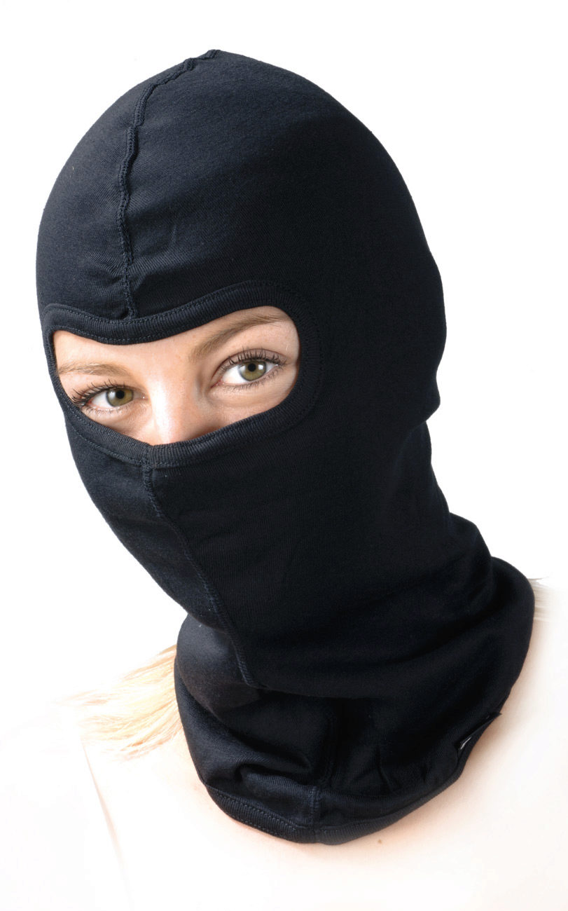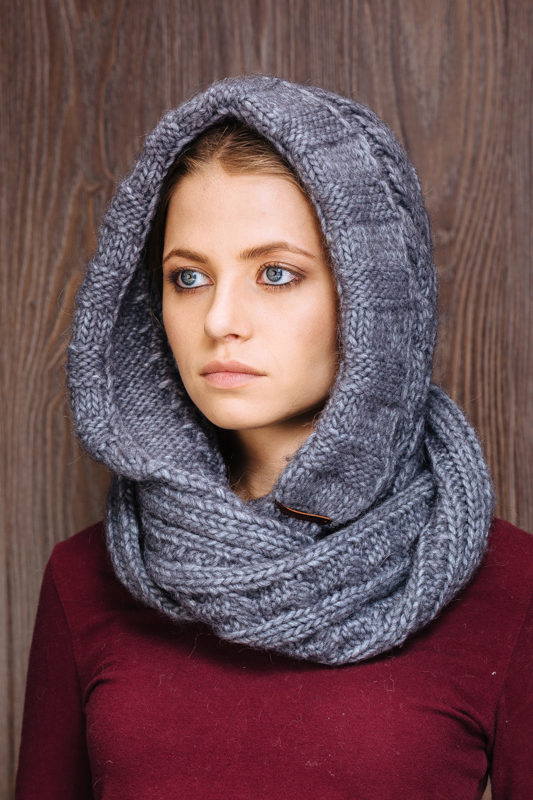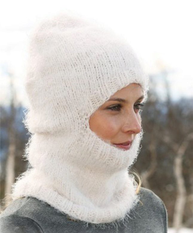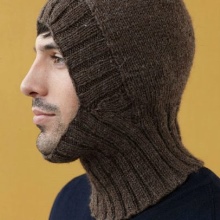 Warm helmets can be sewn from multi-layered or thick fleece, and also from wool: alpaca, angora, camel, or merino. Such a hat may be more voluminous, and in order to fit snugly to the contours of the face, an elastic band, a special knit or a tightening drawstring is used.