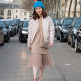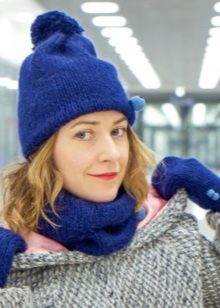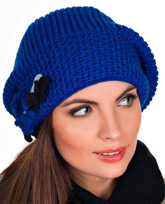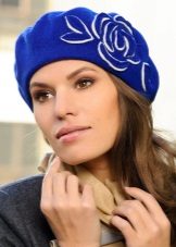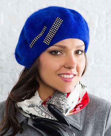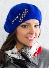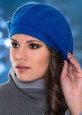 For lovers of the classic knitted beret will be a great choice in blue. It is necessary to give preference to smooth models without the use of three-dimensional patterns. The blue beret blends beautifully with a coat and long gloves.