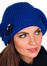 Classic hats are knitted. Designers in the new season have created a huge range of blue caps of yarn.