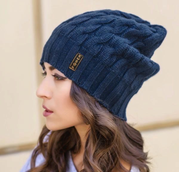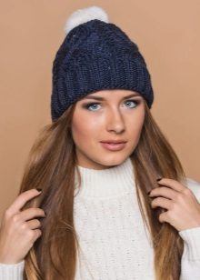 And, of course, you can not forget about the dark blue hats, which are practical. A celadon-colored headdress is very popular. If you are tired of the black color, then a dark blue hat will be an excellent alternative. It can be combined with outerwear in blue, black or gray. This may be an elegant coat, modern jacket or a comfortable down jacket.