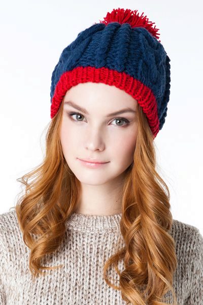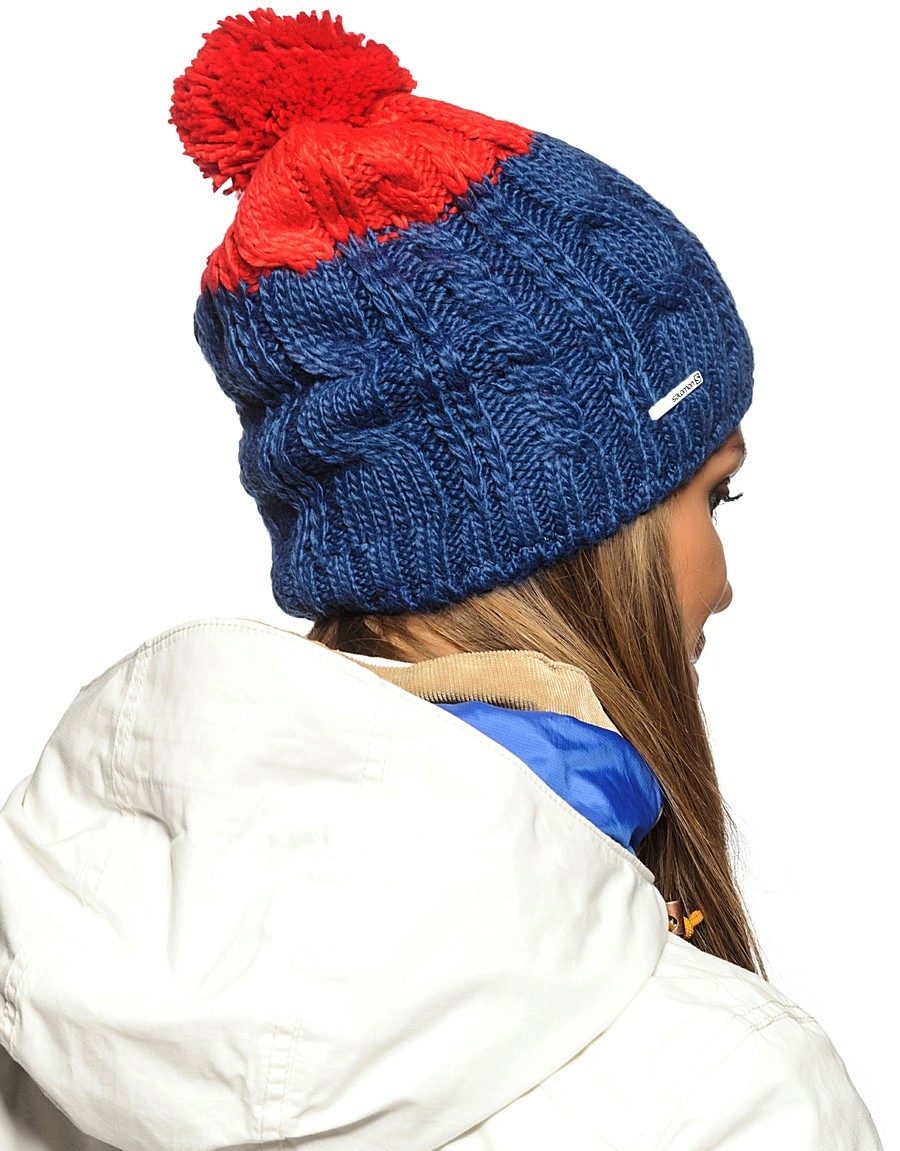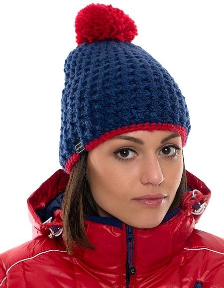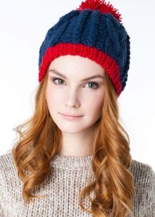 Red and blue hat suitable for strong and bright girls. Usually this color scheme is used in a sporty style. Knitted red and blue hat looks beautiful and original.