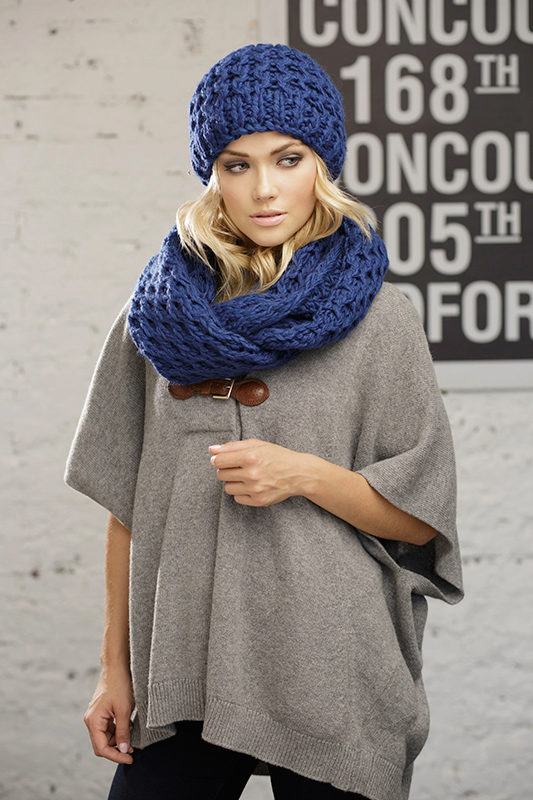 Bright blue hats can be worn in tandem with a scarf.