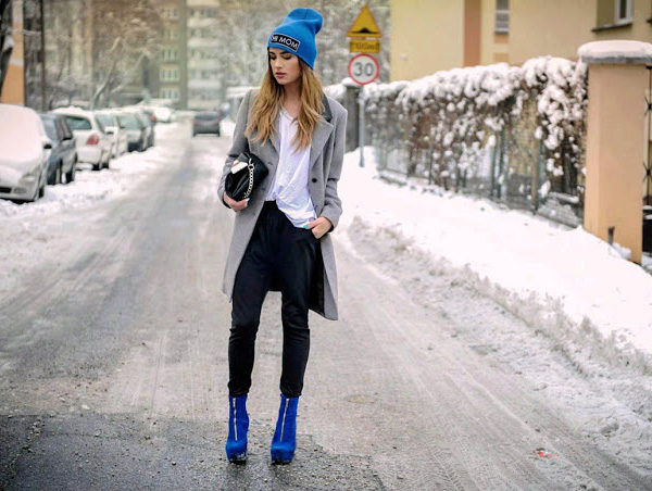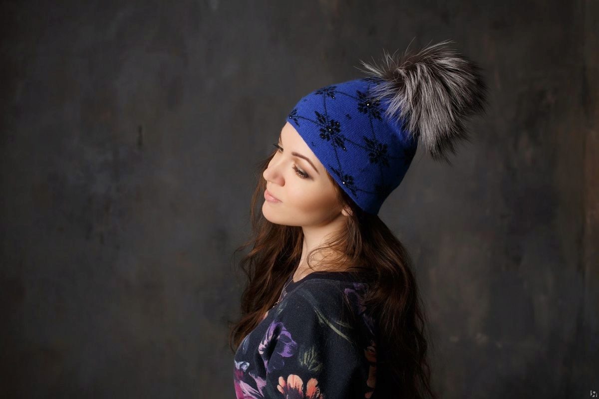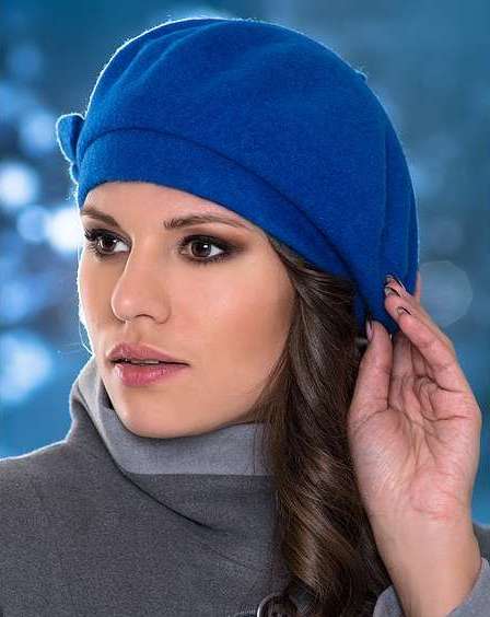 - Representatives of the color type winter will wear a blue hat only if they like bright makeup. An excellent solution would be a blue hat in tandem with outerwear gray tint.