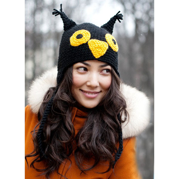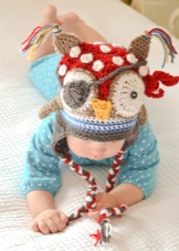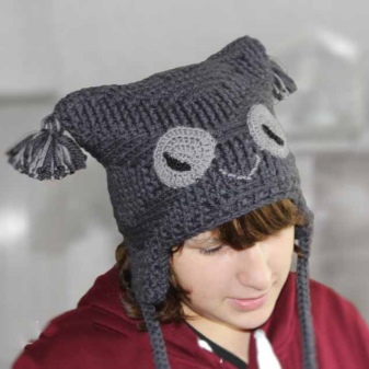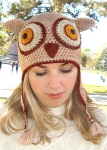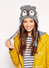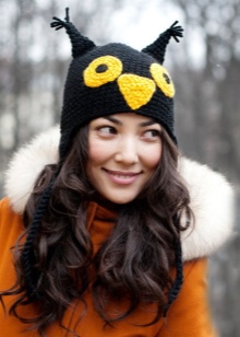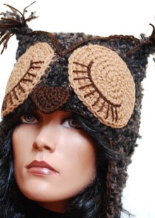 The assortment of hats with the image of owls is truly huge, which is a big plus, because every girl will be able to choose the appropriate option. There are products with an open beak, large eyes, sleeping and with hanging ears in the form of tassels. Also pleased with the color variety and the presence of interesting decorative elements - buttons and pompons. Knitting technique is also different.