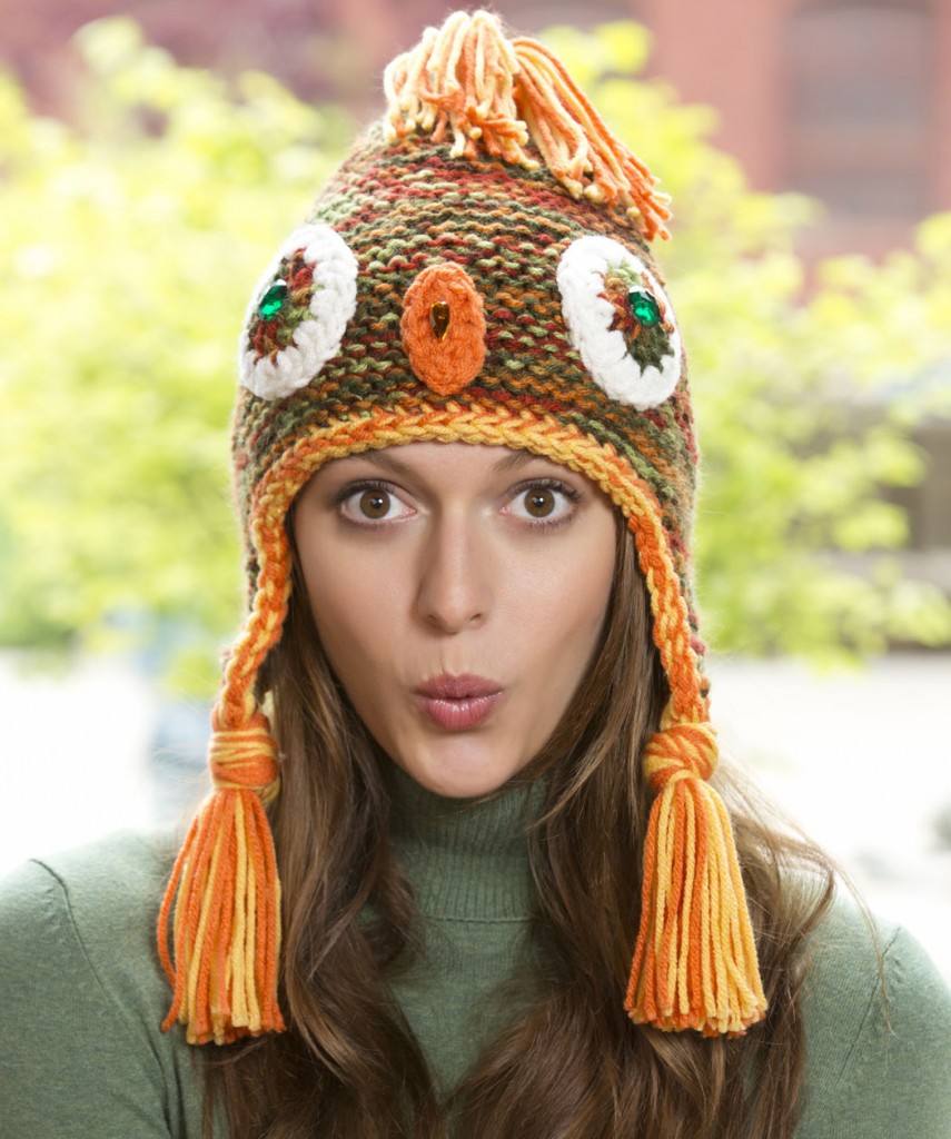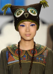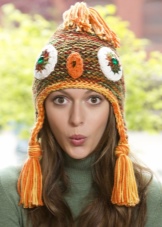 - Multi-colored models will suit very young fashionistas who want to shock the audience. Owl caps in rich shades are suitable even for a sporty look, so if you like to ski, this type is created especially for you.