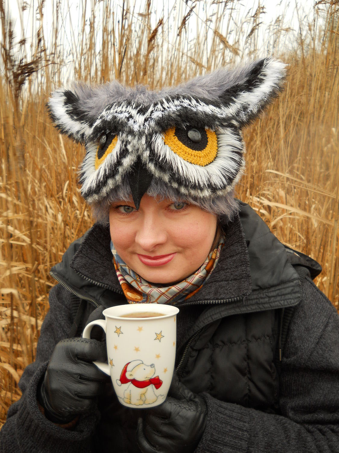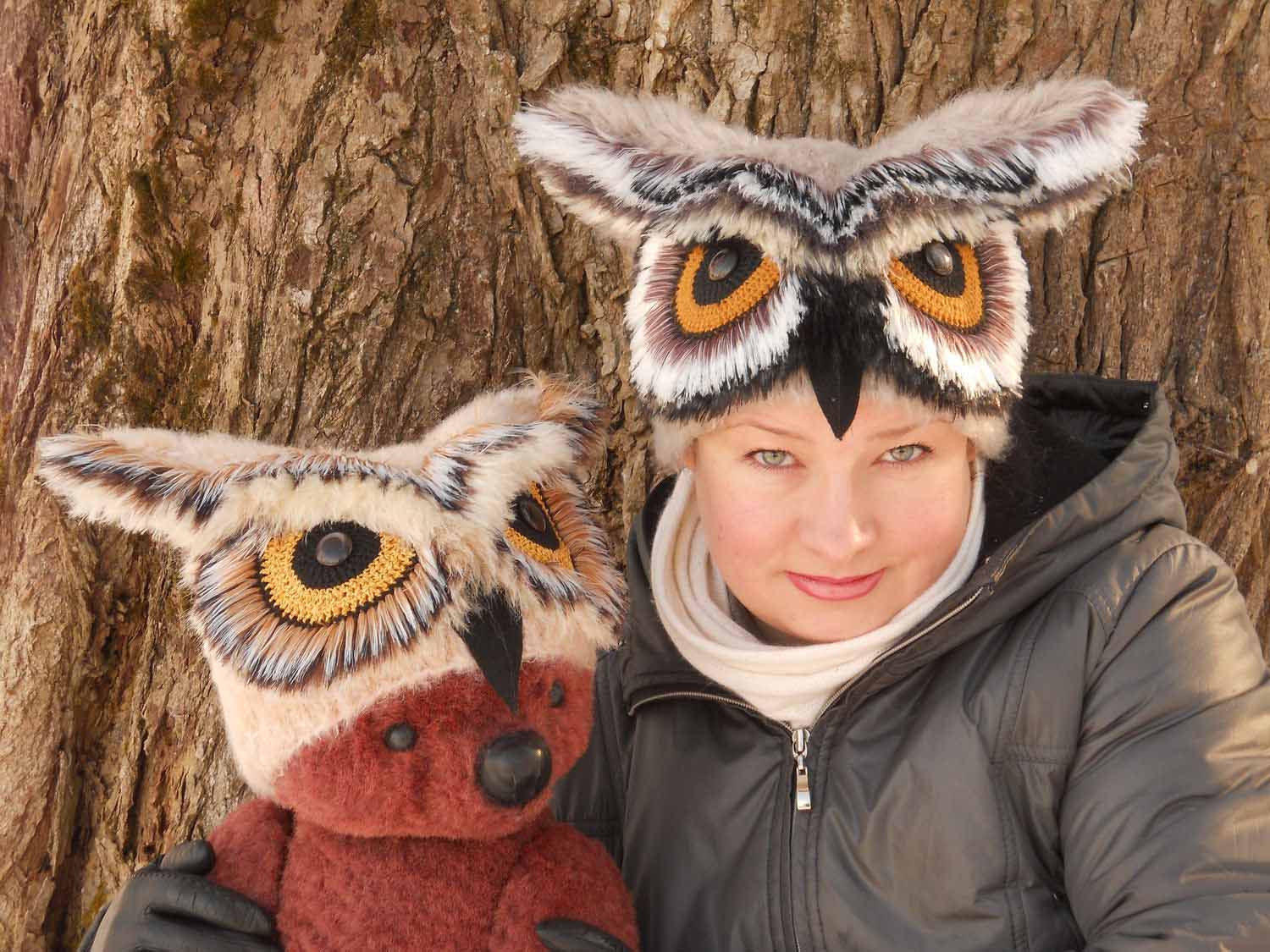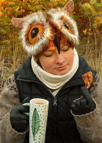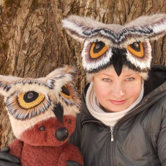 An owl hat for an adult is a great option for those who want to plunge into childhood again, feel their energy and improve their mood. Feedback from customers is positive. Girls write that hats are appropriate in any situation. In winter, the product provides heat, helps to escape from the dank wind and snow.