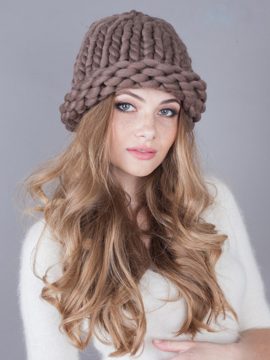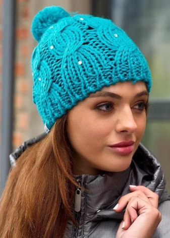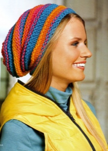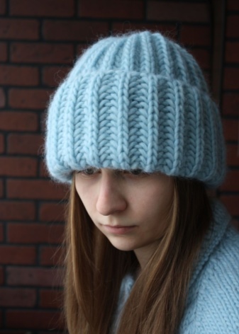The fashionable last couple of seasons thick-knit hats are made with the help of knitting needles number 8-12. As a rule, preference is given to the garter stitch and the front smooth surface, because it is difficult to make a pattern with such bulky threads.