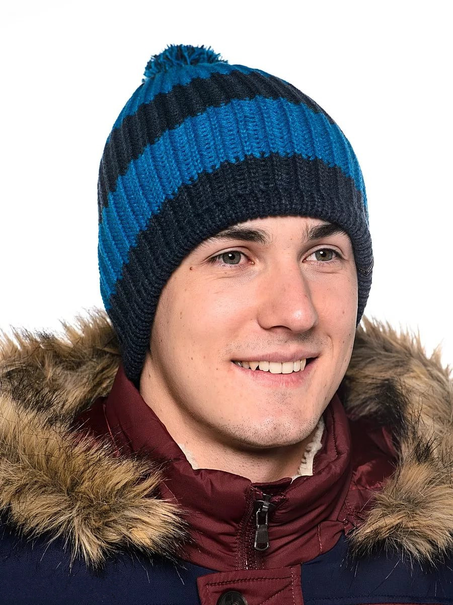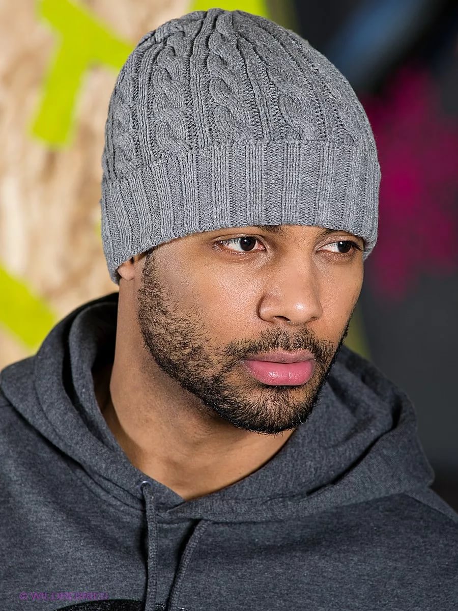 Only male or only female patterns for caps do not exist. They are usually universal. However, it is noted that most men prefer discreet models without excesses, for example, with a pattern of rice, made in soothing colors, in harmony with their winter clothes.