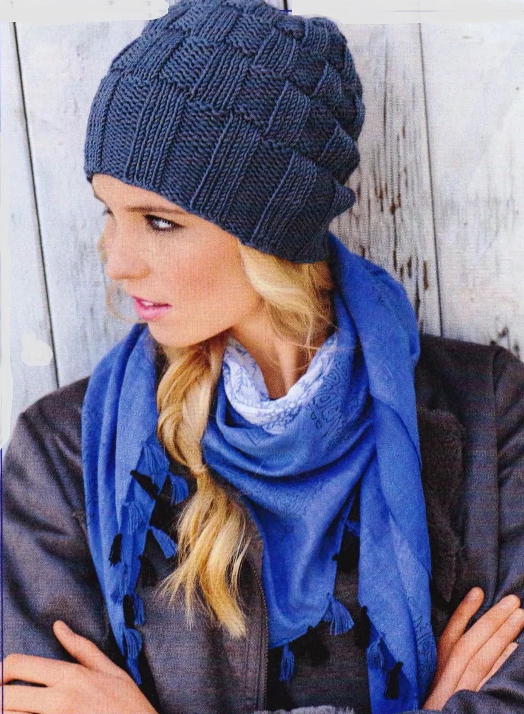 The braids add extra volume and density to the product, thanks to which it retains heat better and protects from the fierce winter frosts, such a pattern can be made as a two-color pattern.