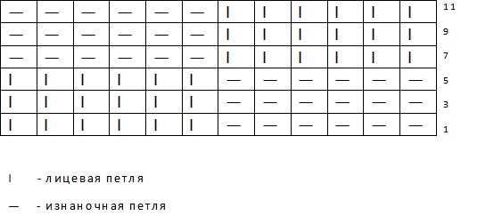 - The remaining rows are knitted, strictly observing the given order - facial over facial, purl over purl.
